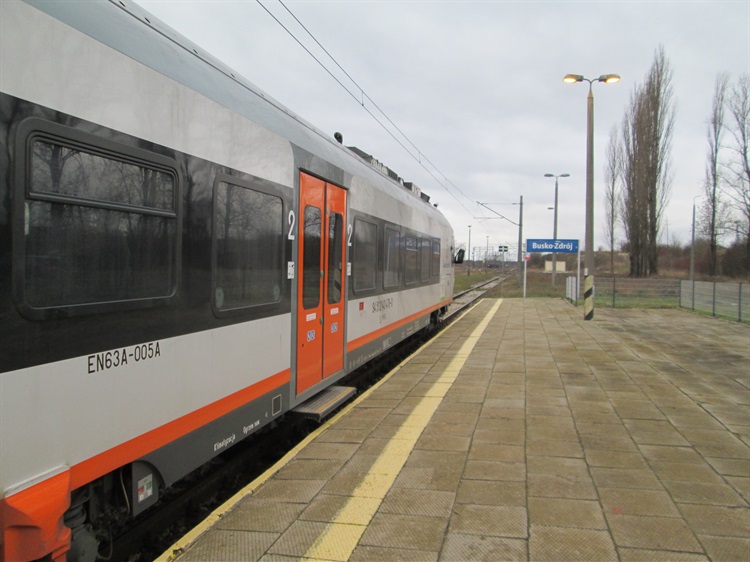 Dworzec kolejowy zlokalizowany jest na peryferiach Buska-Zdroju w miejscowości Siesławice. Jego otwarcie miało miejsce w 1953 roku. W 1995 roku oddano do użytku budynek dworcowy. Regularny ruch pasażerski odbywał się do 18 kwietnia 2005 roku. W okresie późniejszym odbywał się tam sporadyczny ruch pociągów towarowych. W latach 2007-2013 w budynku dworcowym funkcjonowała dyskoteka. Ruch pasażerski wznowiono 30 czerwca 2018 roku uruchamiając sezonową linię do Kielc. Codzienne połączenia pasażerskie wznowiono w 2020 roku.