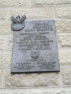 Tablica upamiętniająca żołnierzy Armii Krajowej znajduje się na bocznej ścianie budynku przy ulicy Wałowej od strony Placu Ofiar Katynia. Ufundowana została 27 września 2014 roku, w 75-rocznicę powstania Polskiego Państwa Podziemnego staraniem Światowego Związku Żołnierzy Armii Krajowej. Wykonana jest z białego marmuru. Oprócz napisu pamiątkowego na tablicy widnieje orzełek wojsk lądowych Wojska Polskiego oraz Znak Polski Walczącej.