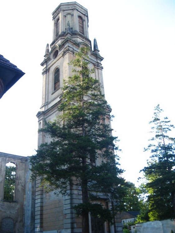 Dawny kościół ewangelicki (XVIII w., rozbudowany XIX w.), obecnie w stanie ruiny.