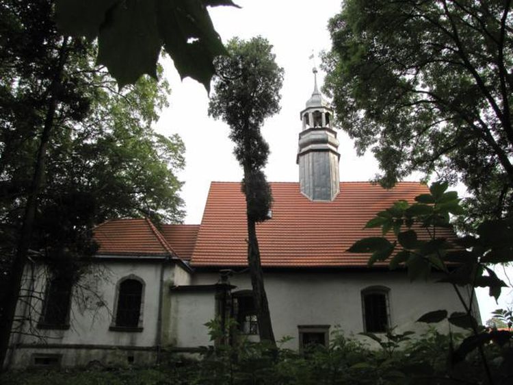 Kościółek zwany polskim był wielokrotnie przebudowywany, zyskując częściowo elementy murowane. W roku 1662 położono kamień węgielny pod budowę nowego kościoła, fundatorem był nowy właściciel dóbr na Lennie Adam Von Koulhas. Nad wejściem sam fundator wmurował kartusz herbowy i tablicę fundacyjną ze swym nazwiskiem.