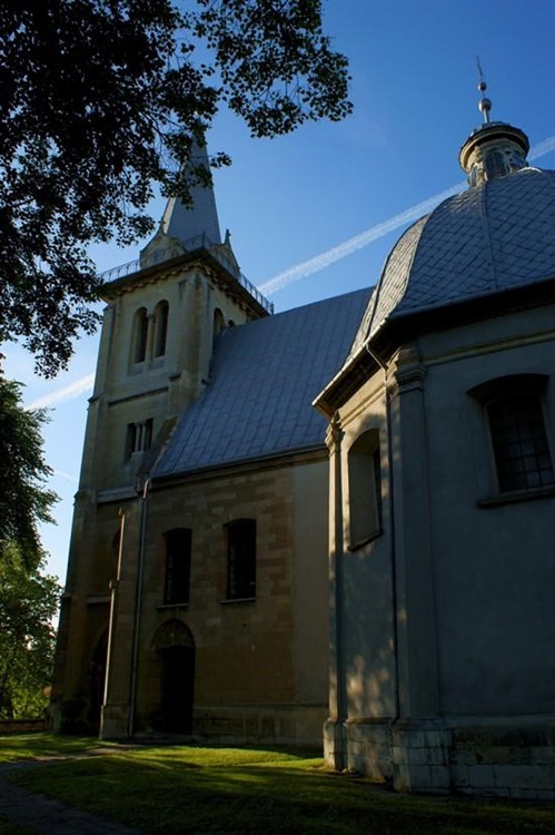 Gotycki kościół Świętej Trójcy (XV w.), kilkakrotnie przebudowywany (kaplice dobudowano w XVII w.).