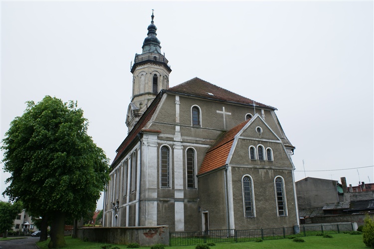 Nową świątynię wznoszono w latach 1784-1785 nadając jej klasycystyczną formę. W 1888 r. do kościoła dobudowano wysoką wieżę zwieńczoną hełmem. Historia gminy ewangelickiej w Nowym Miasteczku skończyła się w 1945 r. Po wyjeździe niemieckich mieszkańców miasta kościół ograbiony z wyposażenia pozostawał nieużytkowany. Po kilku latach zamieniono go na magazyn mebli.