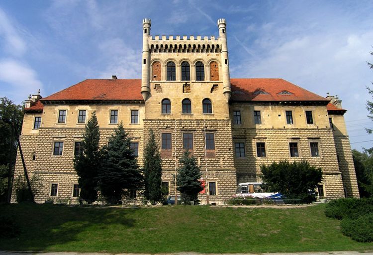 Zamek został wzniesiony w latach 1585-1595 przez biskupa krakowskiego i dziedzica Książa Wielkiego - Piotra Myszkowskiego i jego bratanka, Piotra - starostę Chęcińskiego według projektu włoskiego architekta i zarazem rzeźbiarza - Santi Gucciego, nadwornego artysty Zygmunta II Augusta, Anny Jagiellonki i Stefana Batorego. Budowla założona jest na planie wydłużonego prostokąta zorientowanego w kierunku północ-południe, w części środkowej ma dwa ryzality (od frontu i z tyłu) oraz występy przy bocznych ścianach. Pałac wzniesiony był z cegły i kamienia pińczowskiego, jest dwupiętrowy, podpiwniczony. Piwnice i parter maja renesansowe sklepienia kolebkowe z lunetami. Zamek został zaprojektowany w stylu późnorenesansowym, w późniejszych okresach otrzymał elementy późnobarokowe i neogotyckie. Stoi na wzgórzu Mirowskim oddalonym kilkaset metrów na wschód od Książa.