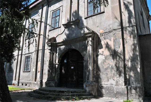 Na pn. wsch. od kościoła stoi dom generała zakonu, tzw. zamek (a potem plebania) z 2 połowy XVIII w. W domu tym jest stiukowy kartusz z płaskorzeźbą przedstawiającą godło bożogrobców (gryfa trzymającego podwójny krzyż).