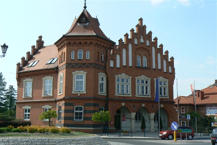 Ratusz w stylu tzw. romantyzmu narodowego (1903). Zaprojektował go Jan Sas Zubrzycki, wybitny architekt lwowski, który w Małopolsce specjalizował się w budowie kościołów w stylu neogotyku nadwiślańskiego. To miał być nasz styl narodowy. Zbudował około 80 kościołow w tej okolicy. Niepolomicki ratusz także jest zbudowany w tym stylu. Wieżyczka, trójkątne szczyty, wszystko z cegły, a zdobienia z kamienia, to najlepsze wyznaczniki stylu nadwiślańskiego.