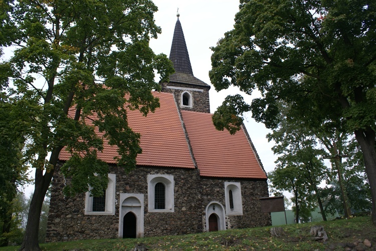 Jest budowlą wzniesioną z kamienia i rudy darniowej, jednonawowy z prezbiterium na planie prostokąta. Od północnej strony przylega do niego wieża z dachem w górnej części niemal pionowym, przechodzącym w iglicę. Przyziemie wieży, która pierwotnie miała charakter obronny, jest wykorzystywane jako zakrystia. Wewnątrz przy północnej i zachodniej ścianie zachowały się empory podparte trzema drewnianymi słupami. Kościół otacza kamienny mur z prostokątną bramą od południa przykrytą czterospadowym dachem.