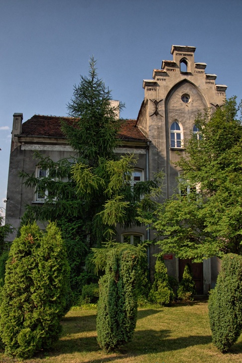 Prosta w formie, dwupiętrowa budowla z dwupiętrowym ryzalitem pośrodku. Obecnie w budynku znajduje się Podstawowa Szkoła Specjalna nr 107.
