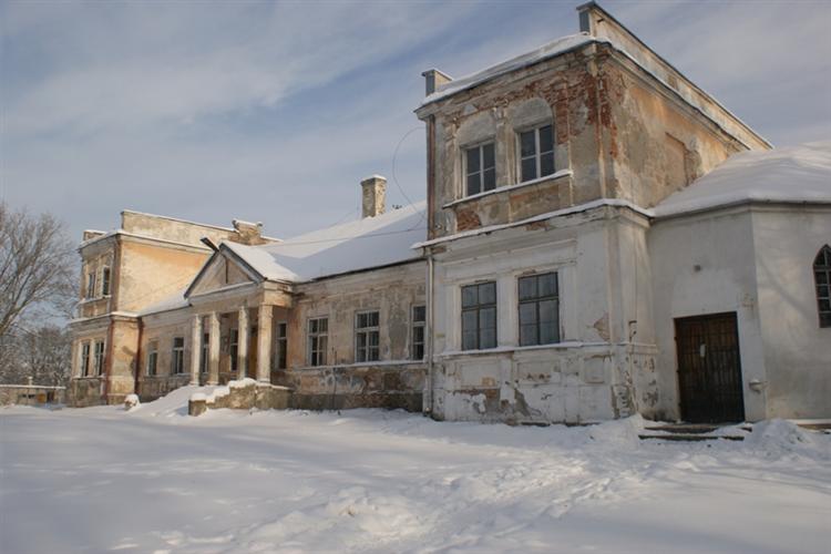 Całość znajduje się w parku częściowo przekomponowanym na krajobrazowy w XIX w. z geometrycznego XVI wiecznego założenia. Nieopodal jest budynek zboru ariańskiego wzniesionego w 1559 r. przez Górskich, ówczesnych właścicieli pobliskich Gór i Węchadłowa. Jest to niewielka budowla, dzisiaj już w stanie ruiny, zarośnięta krzakami. Zachowała się kamienna płyta fundatorów, z mało czytelnym herbem Odrowąż i data Anno Domini 1559. W XIX w. przebudowany i użytkowany jako lamus.