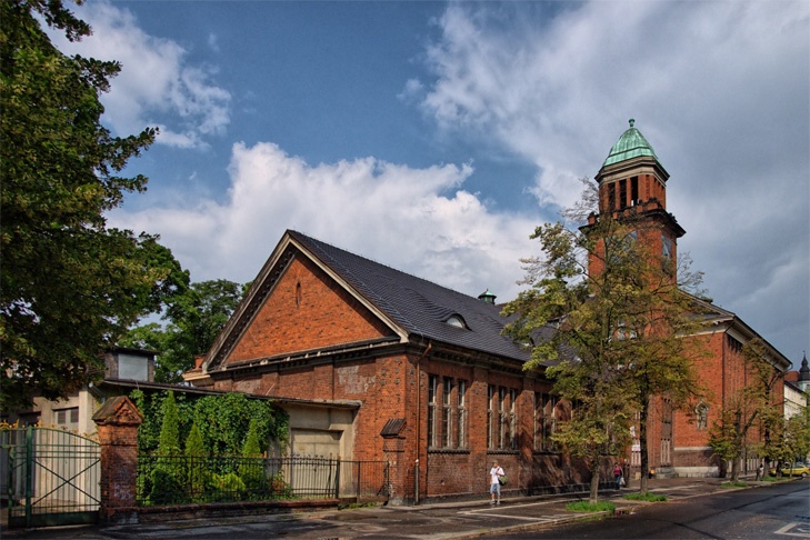 Najstarsza część szkoły pochodzi z roku 1895. Bardzo szybki rozwój Jeżyc i związany z nim wzrost liczby dzieci zmusił władze do rozbudowy szkoły już w roku 1910. Budynek zaprojektowany przez Fritza Teubnera i Hermana Klotha obejmował część z klasami oraz salę gimnastyczną. Szkoła posiada wieżę zegarową górująca nad dzielnicą. w jednej ze ścian umieszczono rzeźbę św. Michała, która zdobiła rozebraną część fortecy Bramę Dębińską.