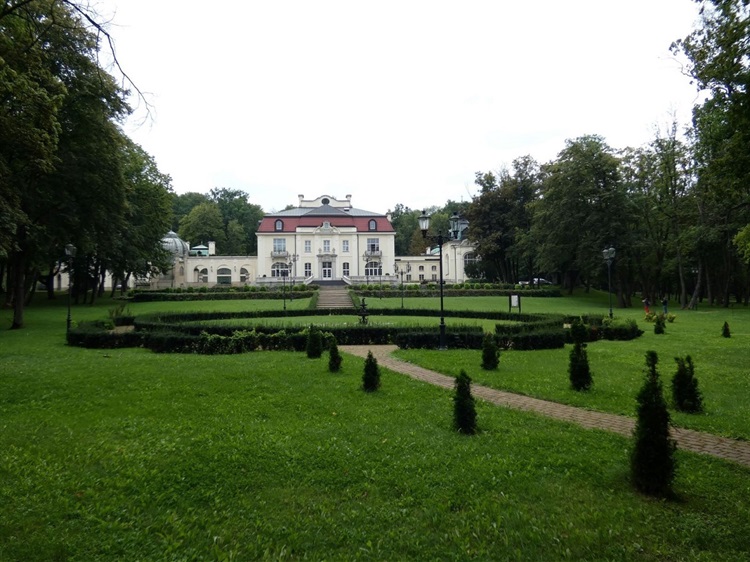 Został wzniesiony w latach 1898-1900 przez wiedeńskich architektów Fellnera i Helmera dla Jana Albina Goetza, właściciela browaru, filantropa i polityka. Zewnętrzny kostium budynku to mieszanina rozmaitych inspiracji, od baroku po modernizm. Wewnątrz zachowały się resztki dawnego wyposażenia: obrazy, meble, kominki, itp. Wokół pałacu znajduje się zespół ogrodowo-parkowy z ponad 55 gatunkami krzewów i drzew.