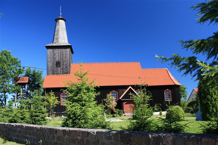 Kościół pw. Świętego Marcina Biskupa z Tours wzniesiony został z fundacji Mikołaja Radziwiłła - starosty człuchowskiego, w latach 1688-1690. Jest świątynią jednonawową z nadbudowaną wieżą. Wnętrze pokrywa płaski strop. Obecnie do najcenniejszych, zabytkowych elementów wyposażenia należą XVIII-wieczny rokokowy ołtarz z rzeźbami ewangelistów i rokokowa ambona. W muzeum w Człuchowie warto zobaczyć jeszcze barokowe rzeźby pochodzące z tego kościoła.