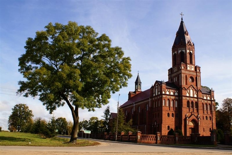 Pierwszy kościół parafialny pw. św.: Andrzeja Apostoła, Wawrzyńca, Marii Magdaleny i Elżbiety zbudowano w roku 1419. W historii parafii istniało kilka kościołów drewnianych, z których ostatni spłonął w 1885 r. Obecny kościół murowany w stylu neogotyckim pw. Zmartwychwstania Pańskiego wybudowano w latach 1888-1893.