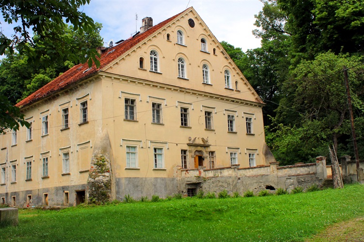 Dwór (XVII w., przebudowany XIX w.). Fragment parku romantycznego