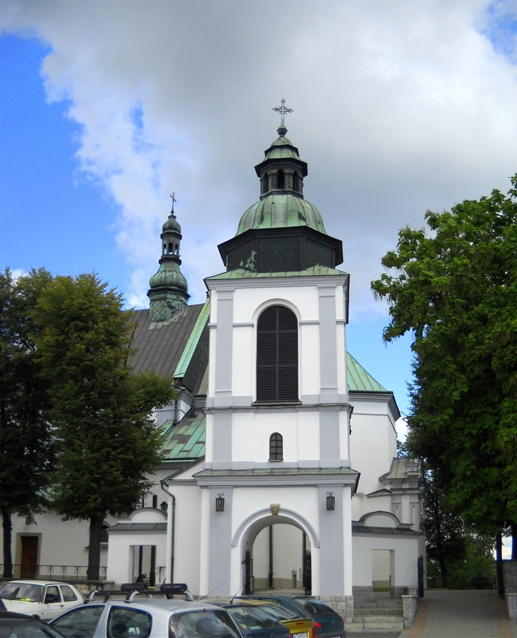 Obecny,murowany kościół zbudowany został w latach 1663-1685 z fundacji Rafała Kazimierza Makowieckiego, kasztelana kamienieckiego. Świątynia była trawiona przez pożary jeszcze dwukrotnie w latach 1799 i 1888 a w 1915 r. ucierpiała w wyniku działań wojennych, kiedy to uszkodzone zostały dachy i zniszczony portal główny. W połowie ubiegłego wieku kościół rozbudowano o nawy boczne i przedsionek oraz nakryto kopułą zakrystię. Przy kościele stoi neobarokowa dzwonnica z XVIII wieku z trzema dzwonami z 1948 r.