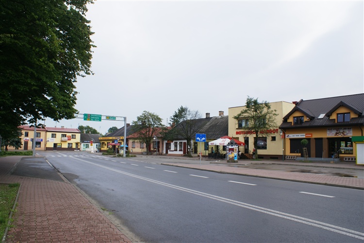 Zachowany dawny układ urbanistyczny z prostokątnym rynkiem.