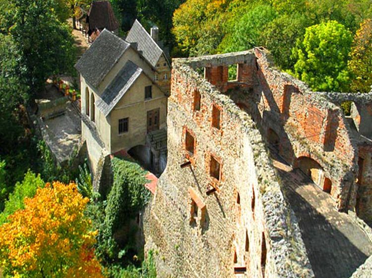Zespół zamkowy składa się z gotycko-renesansowego zamku górnego, wieży oraz zamku dolnego - najmłodszej części warowni. Zamek jest zbudowany z kamienia, a cegły użyto w późniejszych przybudówkach i renesansowych attykach. Wieża jest u dołu czworokątna, wyżej 8-boczna. Górna część zamku jest w ruinie, a w ocalałych salach mieści się niewielkie muzeum Wałbrzyskiego Oddziału PTTK. Na szczególną uwagę zasługują renesansowe portale oraz sgraffitowe dekoracje budynku bramnego (1565).