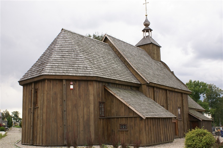 Świątynia jest drewniana, konstrukcji zrębowej, z zewnątrz oszalowana. Jest kościołem jednonawowym, z węższym prezbiterium zamkniętym trójbocznie. Jest to kościół cmentarny, w którym odbywają się uroczystości pogrzebowe. Msze odprawiane są tylko w niedzielę.