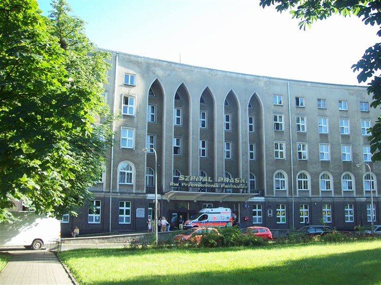 Szpital Praski pw. Przemienienia Pańskiego mieści się na Pradze-Północ przy al. Solidarności 67. Został utworzony w 1868 r. Główny gmach powstał w latach 1934-35. Ma łukowaty plan i zamknięte ostrym łukiem wnęki okienne pośrodku fasady.