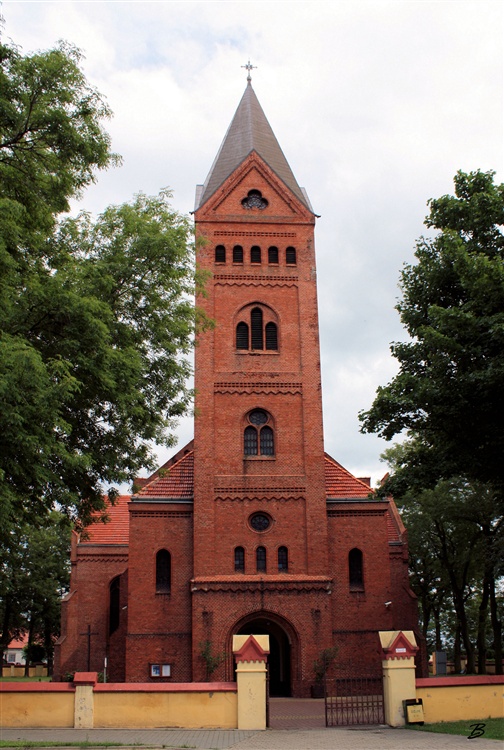 Obecny, neogotycki kościół zaczęto wzniesić na miejscu wcześniejszego, rozebranego na przełomie XIX i XX wieku - jego fragmenty były wykorzystane do budowy północnej ściany dzisiejszej budowli. Do najcenniejszego, zabytkowego wyposażenia kościoła należą: późnogotycka rzeźba Matki Boskiej z Dzieciątkiem z 1520 roku w lewym ołtarzu bocznym, obraz św. Józefa z Dzieciątkiem ze srebrną sukienką z pocz. XVIII wieku, barokowa chrzcielnica z II poł. XVII wieku, obraz Ecce Homo z I poł. XVII wieku, późnogotycki krucyfiks z I poł. XVI wieku pochodzący prawdopodobnie z belki tęczowej wcześniejszego kościoła oraz gotycka, kamienna tablica erekcyjna z 1497 roku.(Betix)