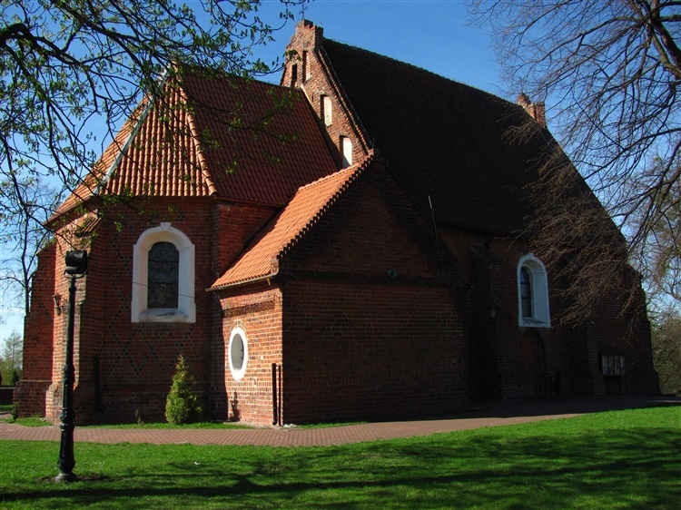 Jest to świątynia murowana z roku 1511 zbudowana z cegły w stylu gotyckim. Wewnątrz w ołtarzu głównym znajduje się otoczony kultem krucyfiks z tego samego roku oraz pochodzące z XIX wieku figury św. Jana i Matki Bożej. Krucyfiks do roku 1838 umieszczony był na belce tęczowej, którą wówczas usunięto. Sam ołtarz główny z dużym obrazem św. Jakuba wykonano w roku 1891. Dwa rokokowe ołtarze boczne pochodzą z XVIII wieku. Warto zwrócić uwagę również na kamienną, gotycką kropielnicę w kształcie kielicha również z 1511 roku stojącą w kruchcie. W siedemnastowiecznej dzwonnicy obok kościoła umieszczony jest dzwon z roku 1580.
