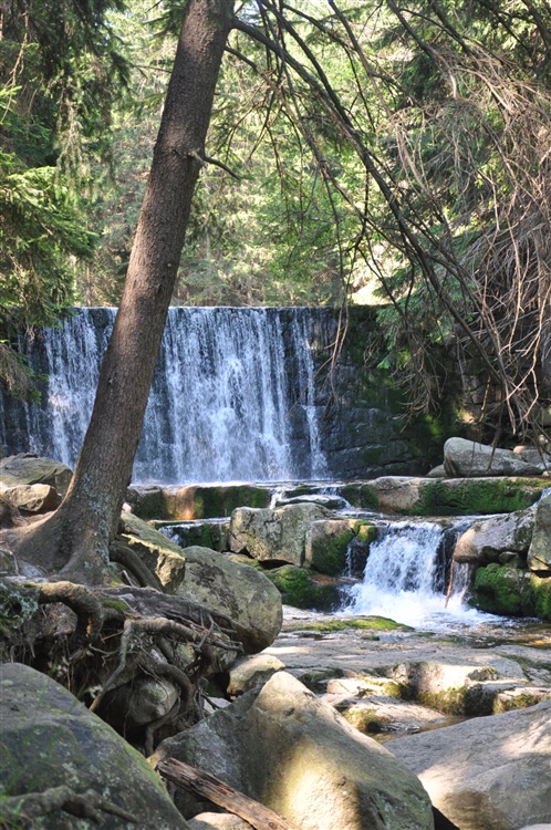 Dojście do wodospadu żółtym szlakiem od Białego Jaru. Zapora, która obecnie nazywana jest Dzikim Wodospadem została zbudowana w latach 1910-1915 w celu uniknięcia powodzi. Pełni ona swoją funkcję do dziś, czego dowodem było uniknięcie strat w Karpaczu podczas wielkiej powodzi w 1997 roku.