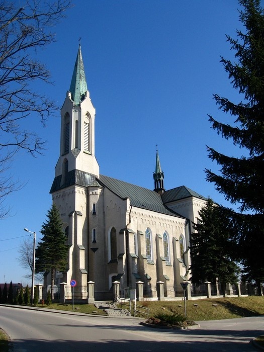 Pierwsza wzmianka o wsi i kościele pochodzi z 1364 r. Pierwszy kościół spalili Tatarzy w 1624 r. Wybudowano wówczas nowy, drewniany, który rozebrano w 1911 r. Obecna świątynia została wzniesiona w latach 1911-13. Elewację wykonano w 1987 r. Obok kościoła znajduje się plebania z 1908 r..