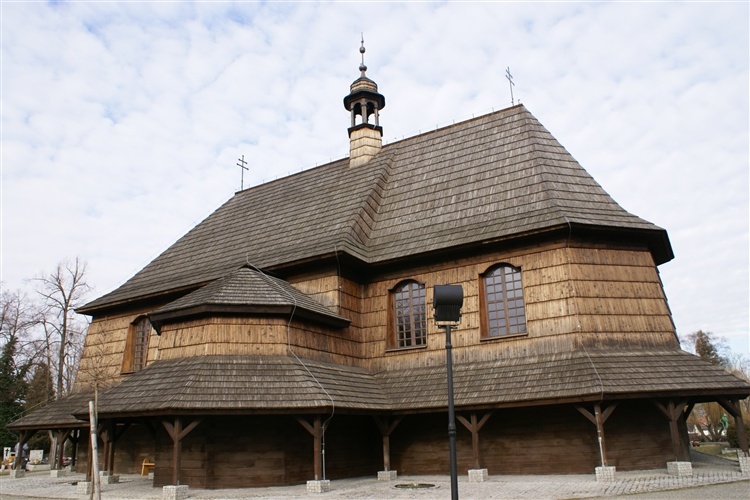 W 1684 r. z chwilą otrzymania pozwolenia budowlanego przystąpiono do budowy drewnianego kościoła. Po czterech latach w 1688 r. budowa kościoła została zakończona, a następnie zaopatrzona w barokowe wyposażenie oraz polichromię z XVIII w. Niestety 19 sierpnia 2005 r. śliczny drewniany kościół został zniszczona przez pożar. Bardzo szybko, bo już 3 lipca 2006 r., a wiec niespełna rok po pożarze przystąpiono do odbudowy lub raczej do budowy nowego również drewnianego kościoła.