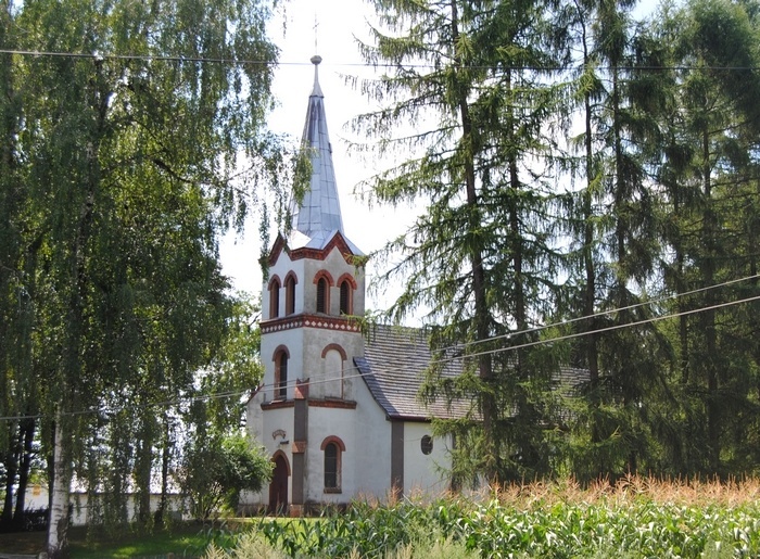 Pierwotnie w miejscu tym znajdował się kościół drewniany. Obecny murowany i otynkowany kościół został zbudowany w 1826 r. i rozbudowany w 1904 r. Na szczególną uwagę w wyposażeniu świątyni zasługuje barokowy ołtarz główny z 1720 roku oraz późnogotycki tryptyk z XV wieku w ołtarzu bocznym.