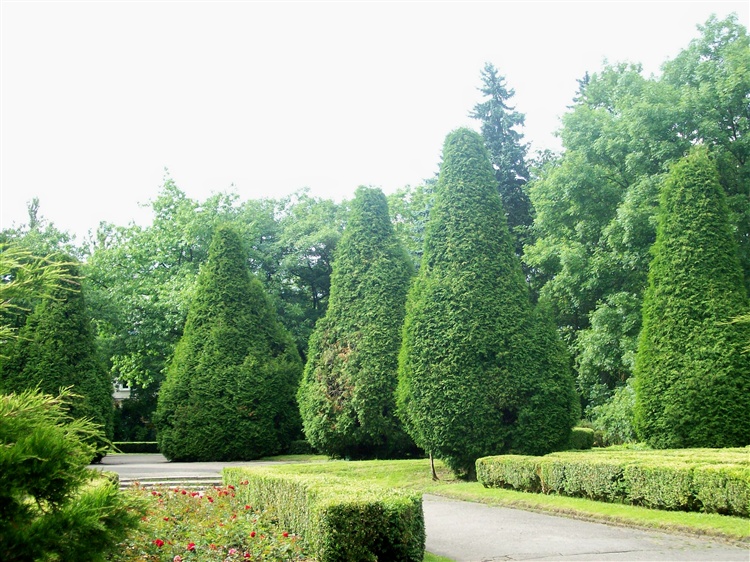 Powstała modernistyczna kompozycja o wyraźnie podkreślonym szerokim prospektem osi głównej biegnącej równolegle do starej alei jesionowo-klonowej. Oś ta biegła na ukos przez teren parku i ciągnęła się również na zachód. Wzdłuż osi umieszczono rząd prostokątnych trawników i kwietników obsadzonych przy granicach szpalerami żywotników zachodnich odmiany kolumnowej.