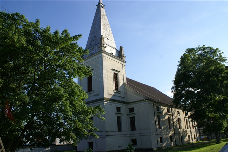 Wzniesiony w latach 1801-1805. Prosta bryła kościoła posiada stylowe cechy późnegoklasycyzmu. Dawniej kościół ewangelicki, obecnie katolicki.
