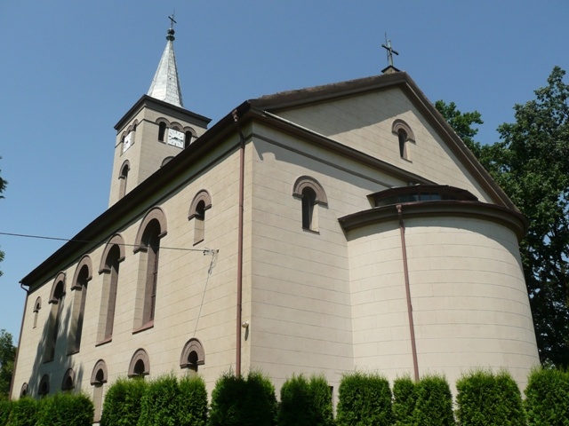 Kościół został zbudowany w latach 1842- 1843, został wzniesiony w stylu późnoklasycystycznym. We wnętrzu kościoła zachowało się częściowo oryginalne wyposażenie z XIX w. Świątynia pierwotnie służyła miejscowym ewangelikom. Po 1945 r. kościół przejęli katolicy, w większości przybyli z Kresów II RP.