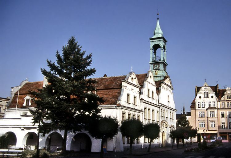 Budynek ratusza jest murowany, w kształcie prostokąta. Posiada bogatą elewacje zewnętrzną. Szczyt budowli wieńczy ażurowy hełm z zegarem. Ratusz jak i centrum w 2013 r. doczekało się rewitalizacji.