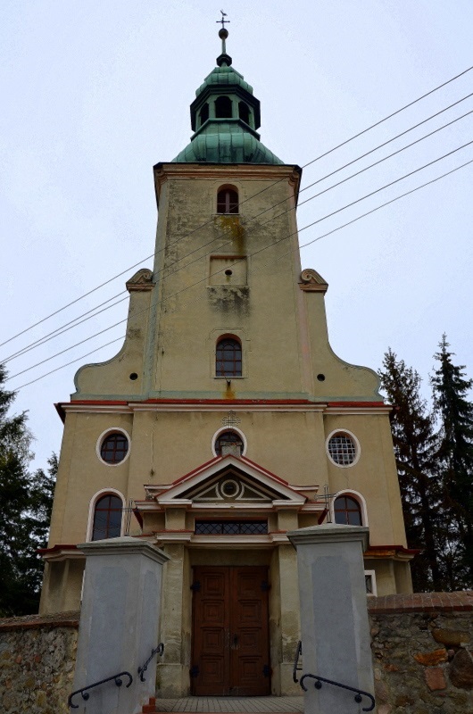 Świątynia wybudowana została w typie dwudzielnym bez wewnętrznych filarów przyściennych z kaplicą w północnej części nawy. Na zewnętrznych ścianach kościoła wmurowane są płyty nagrobne. Starsza, renesansowa, z XVI w. przedstawia płasko rzeźbione Z0ffeln. Od Karłowic Wielkich przez Nysę, Otmuchów, Paczków do Czech wytyczony został Szlak Czarownic. W tych miejscowościach w XVII wieku na stosach spalono najwięcej niewinnych kobiet a stosy ustawiano w najbliższym sąsiedztwie świątyń.