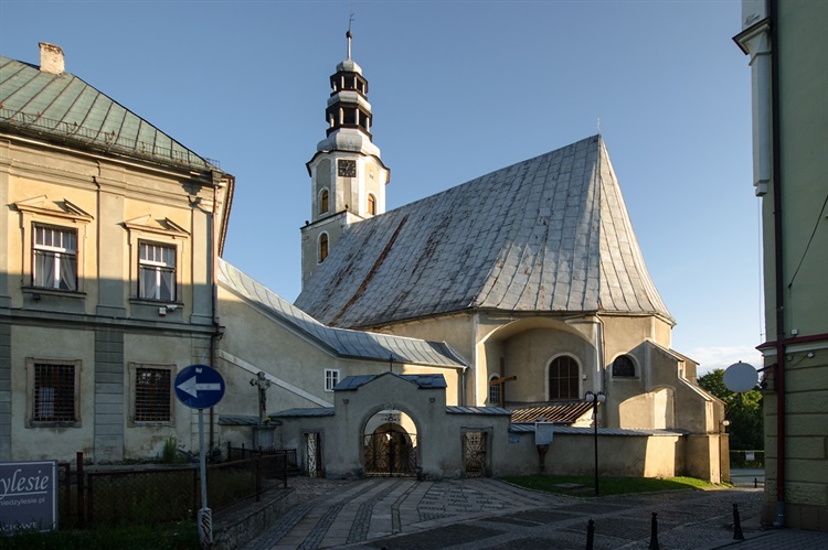 Obecna świątynia istnieje od końca XVIII wieku i do naszych czasów była wielokrotnie odnawiana i rozbudowywana. W tym czasie nadbudowano wieżę oraz połączono kościół krytą galerią z zamkiem. Jednonawowe wnętrze świątyni z szerokim prezbiterium nakrywa kolebkowy strop z lunetami w całości ozdobiony malowidłami. Wystrój kościoła po XX wiecznej odbudowie utrzymano w stylu późnego baroku. W niewielkich fragmentach można dostrzec ślady dawniejszych budowli : skarpowanie i obramienia okien prezbiterium, przyziemie północnej ściany oraz kwadratowa część wieży