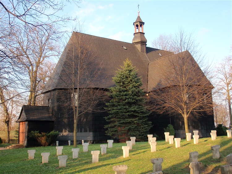 Drewniany kościół odpustowy św. Brykcjusza wzniesiono w latach 1651 – 1661. Ufundowali go Marta i Marcin Wolffowie, właściciele wolnego sołectwa w Gościęcinie. Zbudowany jest na planie krzyża łacińskiego. Ramiona tworzą dwie boczne kaplice zamknięte trójbocznie. Ta skromna z zewnątrz drewniana świątynia ma bogate barokowe wyposażenie. W ołtarzach bocznych znajdują się rzeźby św. Piotra i Pawła, obraz św. Brykcjusza z 1896 r., rzeźby św. Jadwigi i Barbary oraz obraz Chrztu w Jordanie z 1896 r.