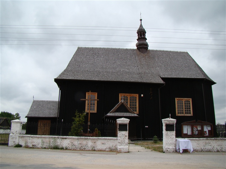 Kościół pw. Matki Bożej Częstochowskiej jest to jeden z dwóch drewnianych kościołów znajdujących się w powiecie włoszczowskim. Kościół zbudowany został ok.1765 r. z fundacji Józefy z Wielopolskich Michałowskiej i nosił wezwanie Wszystkich Świętych. Na podstawie analizy cech stylowych i konstrukcyjnych kościoła, określa się czas jego powstania na początek lub połowę XVII w., jak było naprawdę nie wiadomo... W 1766 roku kościół był konserwowany przez ks. bp Franciszka Potkańskiego, sufragana krakowskiego. Zmiany wezwania na obecne dokonał w 1968 roku prymas Polski kardynał Stefan Wyszyński.