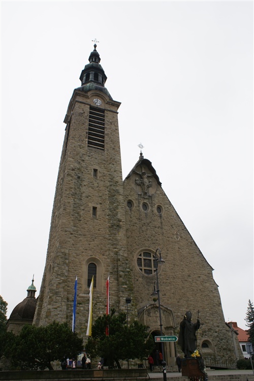 Wewnątrz bazyliki znajdują się także barokowe figury świętych, wielobarwne polichromie na stropach, chrzcielnica z XVI wieku. W górnej części fasady świątyni znajduje się rzeźba ukrzyżowanego Jezusa, obok z lewej strony kościoła stoi 65 metrowa wieża. Naprzeciwko głównego wejścia stoi 4 metrowy pomnik Papieża Jana Pawła II. Z tyłu kościoła stoi ołtarz polowy pod którym mieści się kaplica Grobu Pańskiego.