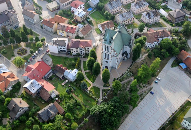 Neogotycki kościół został zbudowany w latach 1891-1910 na miejscu starej drewnianej świątyni. Wnętrze ozdabia polichromia prof. Juliana Makarewicza z 1921 r. (świeżo odnowiona).