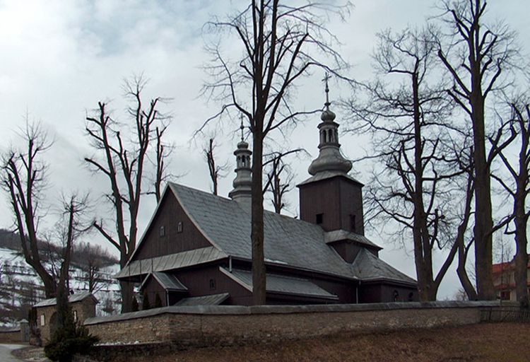 Drewniany kościół pw. Znalezienia Krzyża Świętego (1816, przebudowany 1849). Nieopodal kościoła grupa drzew – pomników przyrody (13 lip drobnolistnych i 1 dąb szypułkowy, o obwodzie 189-460 cm.).