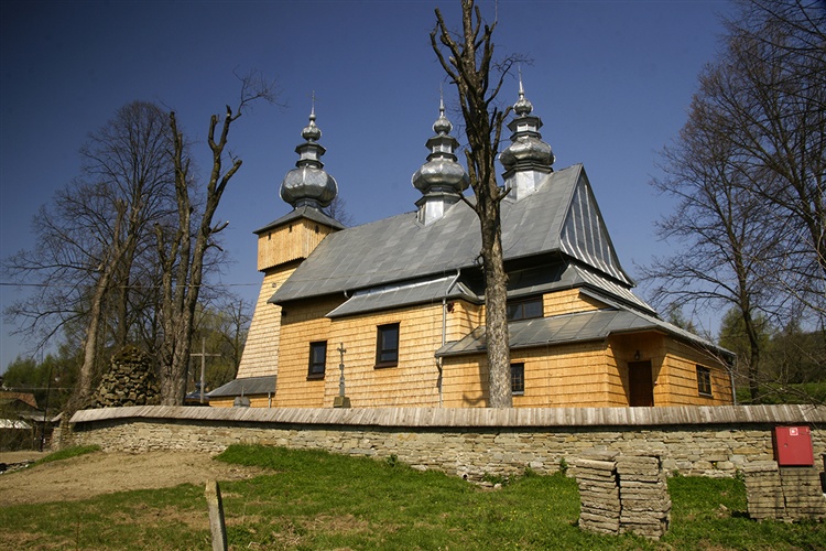 Świątynia wzniesiona w 1760 roku. Budowla drewniana, konstrukcji zrębowej, jednonawowa, przebudowana. Wewnątrz znajduje się kamienny ołtarz z relikwiami św. Wojciecha z 1967 roku, ikonostas pochodzący z II połowy XVIII wieku oraz polichromia z 1913 roku. Cerkiew znajduje się na Szlaku Architektury Drewnianej województwa małopolskiego. Na terenie przycerkiewnym stoją stare krzyże nagrobne.