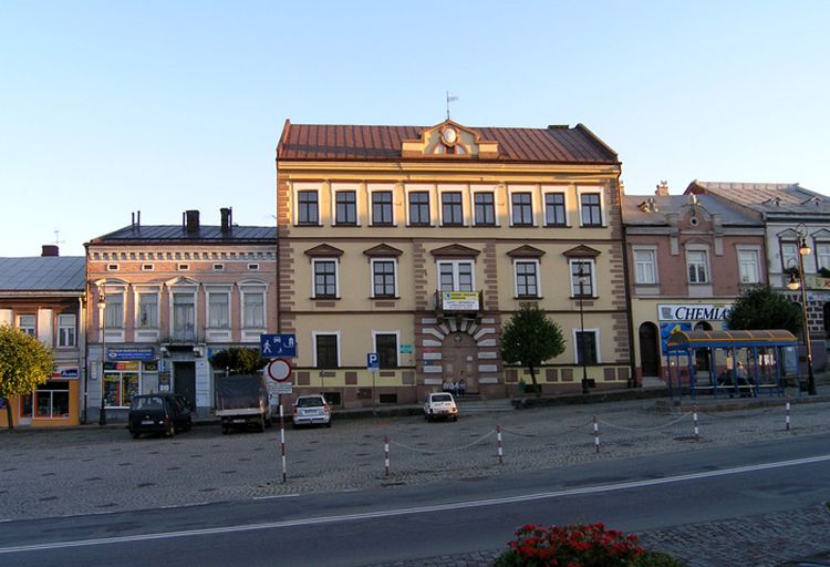 Budynek wzniesiony z przeznaczeniem na ratusz (1876), liceum.