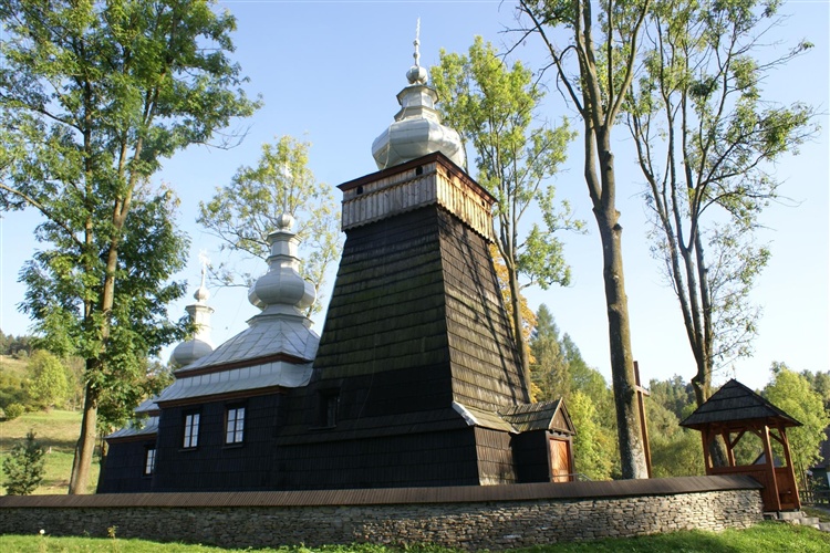 Świątynia drewniana, konstrukcji zrębowej, trójdzielna, orientowana. Dach pokryty blachą, zwieńczony baniastymi hełmami. Wieża konstrukcji słupowo–ramowej. Wewnątrz zachował się ikonostas z przełomu XVIII i XIX wieku, ołtarz główny, ikona św. Mikołaja, polichromia ornamentalno-figuralna z I połowy XX wieku. Świątynię otacza kamienny mur z bramką.