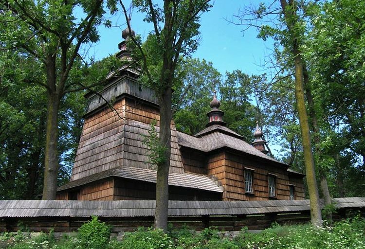 Drewniana cerkiew greckokatolicka św. św. Kosmy i Damiana (1784) zbudowana z drewna jodłowego jest w całości pokryta gontem. Świątynia wybudowana w typie łemkowskim jest budowlą trójdzielną, orientowaną z wieżą o pochylonych w górę ścianach. Wieżę nakrywa kopulasty hełm. Namiotowe dachy cerkwi zdobią wieżyczki z latarniami.