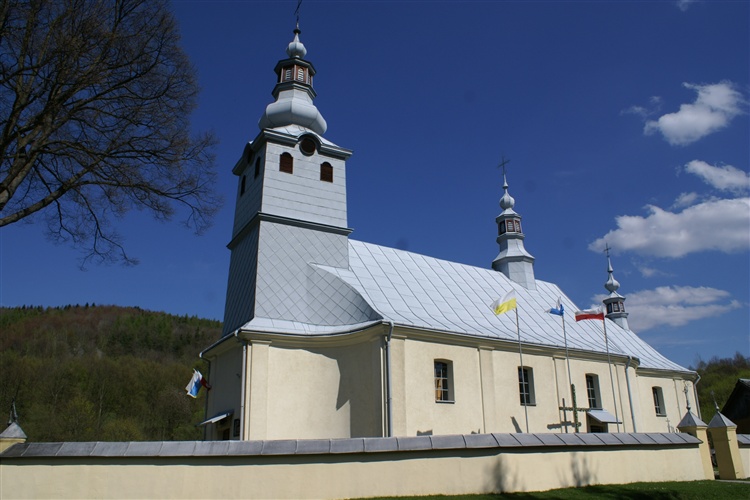 Kościół jednonawowy, murowany z kamienia i cegły, pokryty blachą. Wewnątrz zachowały się fragmenty boczne ikonostasu który został zniszczony po wysiedleniu mieszkańców w ramach Akcji Wisła, polichromia na suficie przedstawiająca Zmartwychwstanie pochodząca z XIX wieku, polichromie przedstawiające św. Olgę i Włodzimierza, Chrzciciela Rusi, ołtarze barokowo-klasycystyczne.