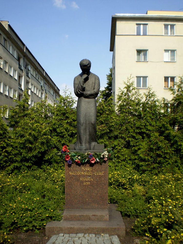 Pomnik dwukrotnej noblistki dłuta Ludwiki Nitschowej stanął w 1935 r. Znajduje się przed Instytutem Onkologii im. Marii Skłodowskiej-Curie (dawny Instytut Radowy). Podczas otwarcia instytutu Skłodowska ofiarowała 1 gram radu do celów leczniczych i badawczych. W ogrodzie zasadziła także kilka drzew. Jedno z nich rośnie po dziś dzień - jest na nim tabliczka pamiątkowa.