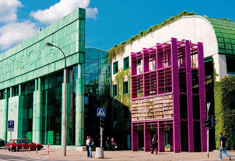 Otwarty w 1999 r. kompleks Biblioteki Uniwersyteckiej (ul. Dobra 56/66) jest jednym z najciekawszych obiektów Warszawy. Gmach zaprojektowany przez Marka Budzyńskiego i Zbigniewa Badowskiego składa się z dwóch budynków rozdzielonych pasażem, nakrytym przeszklonym dachem. Budynek stojący przy samej ulicy nazywany jest "rogalem komercji" (ma kształt rogala i mieści sklepy oraz biura). Na fasadzie z betonu i pokrytej patyną miedzi umieszczono karty ksiąg z różnymi formami zapisu ludzkiej myśli: nuty partytury Karola Szymanowskiego, zapis matematyczny liczby π, fragment Biblii w sanskrycie, tekst hebrajski i arabski, grecki dialog Platona, staroruską pochwałę ksiąg i staropolski tekst Jana Kochanowskiego. Przy północnym wejściu mosiężne litery w chodniku układają się w napis "Oś Saska" - to symboliczne przedłużenie największego barokowego założenia urbanistycznego Warszawy. Obok południowego wejścia stoi natomiast pomalowana na różowo konstrukcja - to część zabytkowego rusztu z dawnego gmachu biblioteki.