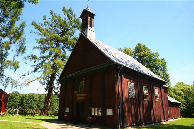 Niewielkie Skuły położone są w malowniczej dolinie Pisi Tucznej. Na skrzyżowaniu dróg w centrum wsi stoi otoczony potężnymi modrzewiami drewniany kościółek. Świątynię pod wezwaniem św. św. Piotra i Pawła ufundowali w 1679 r. właściciel Skuł Seweryn Skulski i księża misjonarze z warszawskiego kościoła Świętego Krzyża. Z zewnątrz budowla prezentuje się skromnie, ale tonące w półmroku wnętrze jest bogato zdobione, które warto zobaczyć. Wyposażenie - rokokowy ołtarz główny i dwa ołtarze boczne oraz barokowa ambona i chrzcielnica - pochodzi z drugiej połowy XVIII w. W tym czasie wykonano też iluzjonistyczną polichromię. Sceny ze Starego i Nowego Testamentu odmalowano nie wprost na drewnie, ale na przytwierdzonym do ścian płótnie.