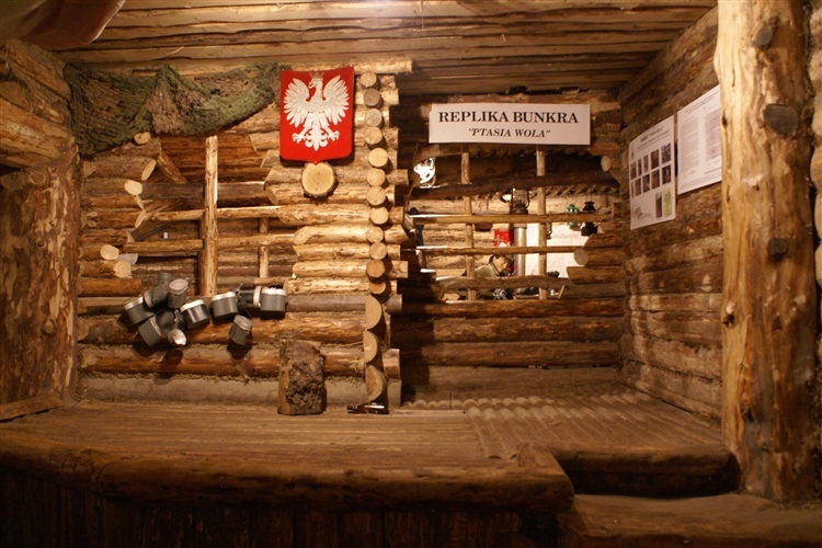 Rekonstrukcję takiego bunkra możemy obejrzeć zwiedzając CEPR w Szymbarku. Do wejścia skierują nas strzałki. Aby dostać się do głównego pomieszczenia, należy pokonać dość ciemny, wilgotny i wąski korytarz. W głównym pomieszczeniu, kilka metrów pod ziemią znajduje się ekspozycja poświęcona wciąż zbyt słabo znanej historii "Gryfa Pomorskiego". Zgromadzone mapy, mundury, broń, maszyny do pisania i inne przedmioty zostały zaaranżowane tak, by jak najwierniej oddać atmosferę schronu partyzantów. Obok śpiącego na pryczy żołnierza (manekin) przechodzimy niemal na palcach, by nie zakłócić jego snu, nieśmiało zerkamy przez ramię drugiemu partyzantowi piszącemu na maszynie meldunek.