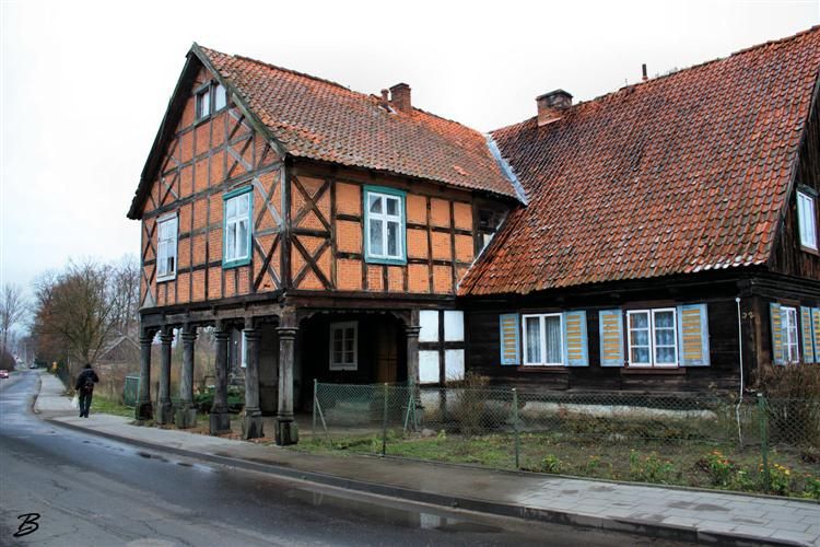Początki stałego osadnictwa na Żuławach sięgają XIII w., lecz kolonizacja na wielką skalę przeprowadzona została dopiero przez Krzyżaków w XIV w. siłami sprowadzonych przez nich kolonistów niemieckich. Wsie na prawie niemieckim (w wersji chełmińskiej) miały zwartą zabudowę wzdłuż jednej ulicy (placu), a domy wznoszone przez osadników posiadały charakterystyczne podcienie szczytowe wsparte na kilku masywnych słupach.