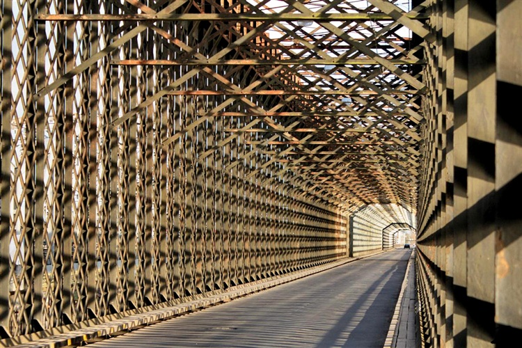 Zaskakująco wygląda jednokilometrowa okratowana czeluść - gdy się w nią wjeżdża, widać w odległej perspektywie mały otwór na przeciwległym brzegu. Staruszek jest nadal rekordzistą wśród polskich mostów - do jego pomalowania trzeba zużyć ponad 20 ton farby!